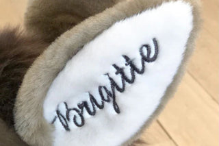 Selon l'animal choisi, la taille du modèle, et vos préférences, vous pouvez opter pour une broderie délicate sur la patte ou l'oreille, faire personnaliser son bonnet, ajouter un bandana sur mesure, ou customiser le petit pochon dans lequel la peluche vous sera livrée.
