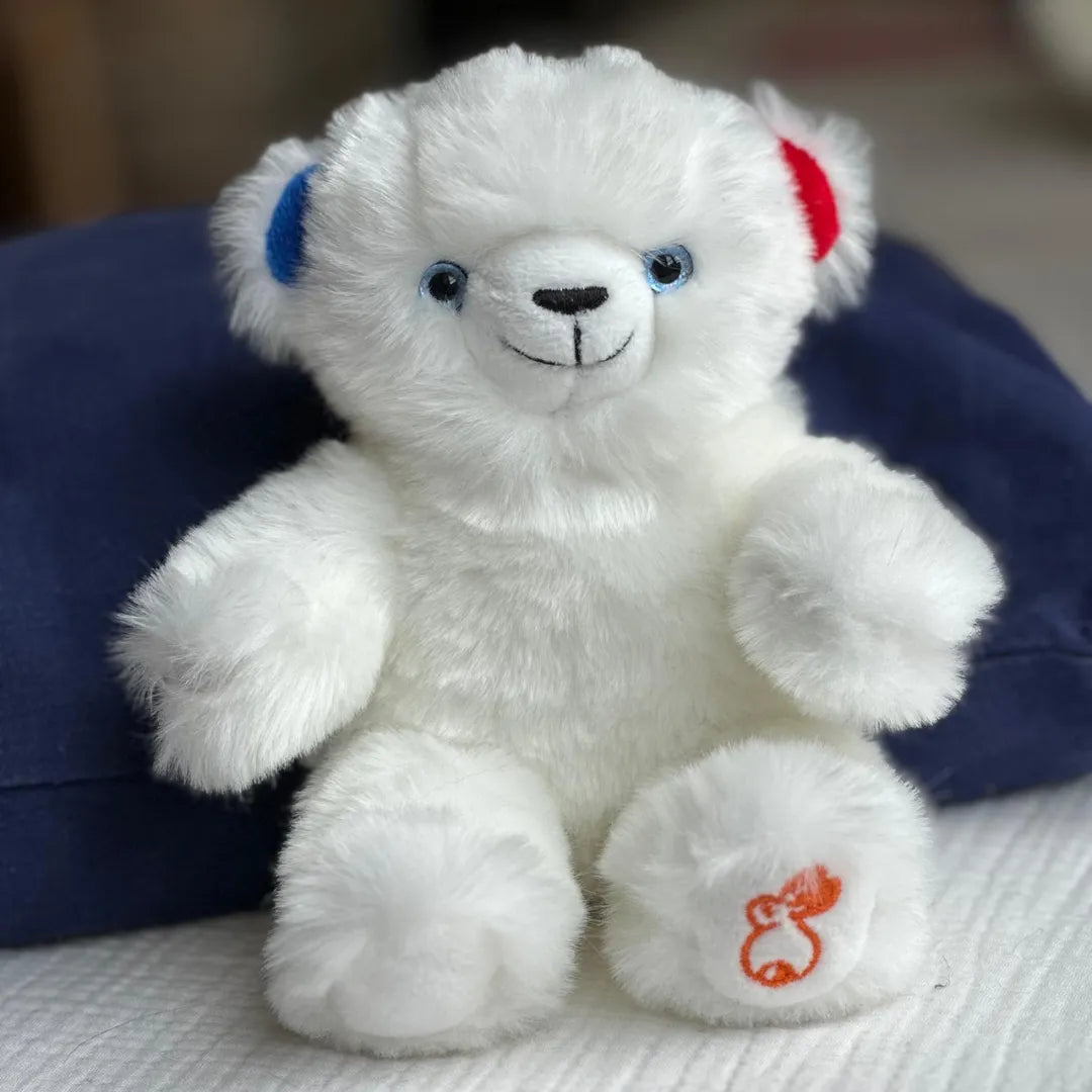 En édition limitée, notre peluche ours Émile Cocorico aux oreilles bleu, blanc, rouge est une véritable pièce de collection conçue pour inspirer et unir tous les cœurs en cette période olympique !