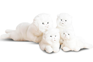 I'm Oscar, every cat lover's plush cat ! My Italian seamstresses gave me a very realistic appearance, especially thanks to the short hair on my paws and my long , soft and silky white coat. With my iridescent blue eyes, my finely penciled mouth and my neatly ironed little pink muzzle, I have everything it takes to win your heart!