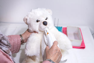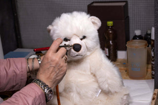 Intégralement cousue main, chaque peluche est unique et demande une grande précision technique, un choix réfléchi de matériaux haut de gamme et un savoir-faire parfaitement maîtrisé par les couturières historiques de notre atelier en Italie.